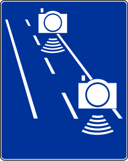 O odcinkowym pomiarze prędkości informuje znak D-51a „automatyczna kontrola średniej prędkości”. Umieszcza się go na początku odcinka objętego automatyczną kontrolą prędkości, w przekroju poprzecznym drogim, w którym znajduje się stacjonarne urządzenie rejestrujące1. Jeżeli początek drogi znajduje się w miejscu o ograniczonej widoczności ze względu np. na obiekty w pobliżu lub geometrię drogi, znak pomiaru prędkości jest uzupełniony tabliczką T-1a. Z kolei koniec odcinkowego pomiaru prędkości wskazuje znak D-51b.