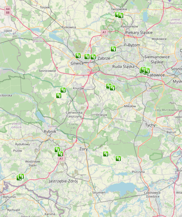 | Gliwice (aleja Jana Nowaka-Jeziorańskiego) | DK88 |