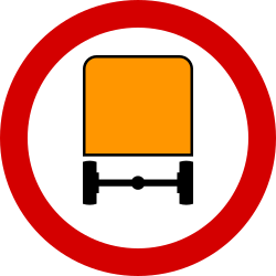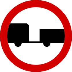 Znak ten oznacza zakaz ruchu pojazdów silnikowych z przyczepą lub przyczepami (nie dotyczy pojazdów z przyczepą jednoosiową lub naczepą) |
