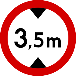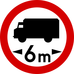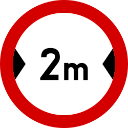 Znak ten oznacza zakaz ruchu pojazdów, których szerokość, również z ładunkiem, przekracza podaną na nim wartość |