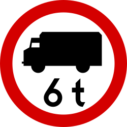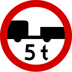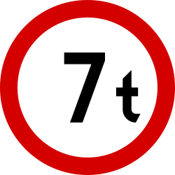 Znak ten oznacza zakaz ruchu pojazdów lub zespołu pojazdów o rzeczywistej masie całkowitej przekraczającej podaną na nim wartość |