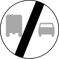 Znak ten oznacza koniec obowiązywania zakazy wyprzedzania przez pojazdy ciężarowe |