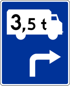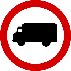 Znak ten oznacza zakaz ruchu samochodów ciężarowych o dopuszczalnej masie całkowitej powyżej 3,5 t, ciągników samochodowych, pojazdów specjalnych i używanych do celów specjalnych o masie ponad 3,5 t, ciągników rolniczych oraz pojazdów wolnobieżnych |