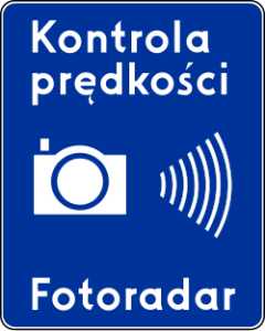 Znak ten uprzedza o miejscu, w którym prędkość pojazdów jest kontrolowana i rejestrowana przez stacjonarne urządzenia rejestrujące |