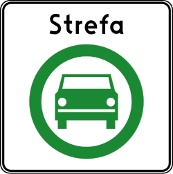 Znak ten oznacza wjazd do strefy czystego transportu, po której mogą poruszać się wyłącznie pojazdy spełniające określone wymogi dotyczące norm emisji spalin |