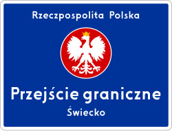 Znak ten informuje o czynnym przejściu granicznym |