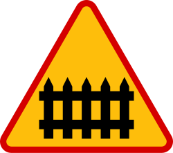 O zbliżaniu się do przejazdu kolejowo-drogowego wyposażonego w rogatki informuje znak ostrzegawczy A-9 „przejazd kolejowy z zaporami”. Z kolei przed przejazdami kolejowo-drogowymi, które nie mają takich zabezpieczeń umieszcza się znak A-10 „przejazd kolejowy bez zapór”. Oba mają kształt trójkąta zwróconego wierzchołkiem ku górze, żółte tło i czerwoną obwódkę.