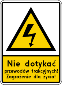 Na przejazdach, nad którymi zawieszona jest sieć trakcyjna pod wysokim napięciem, umieszcza się znak G-2 „sieć pod napięciem”.