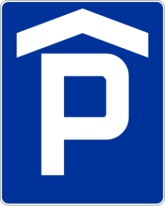 Znak ten oznacza miejsce przeznaczone na postój pojazdów znajdujące się w budynku lub pod wiatą |